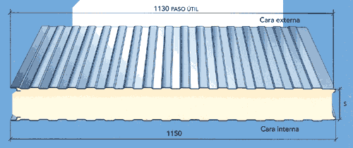 Panel formado por dos chapas de acero galvanizado y prelacado, con un