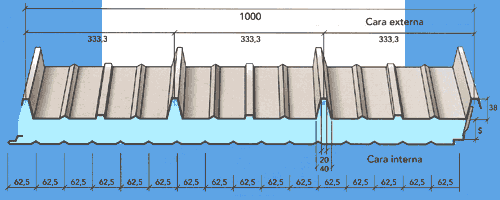 Panel de cubierta formado por dos chapas de acero galvanizado y prelacado,
