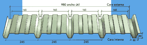 Chapa grecada para cubiertas Sandwich, formadas por dos perfiles de chapa y aislamiento intermedio de manta IBR.